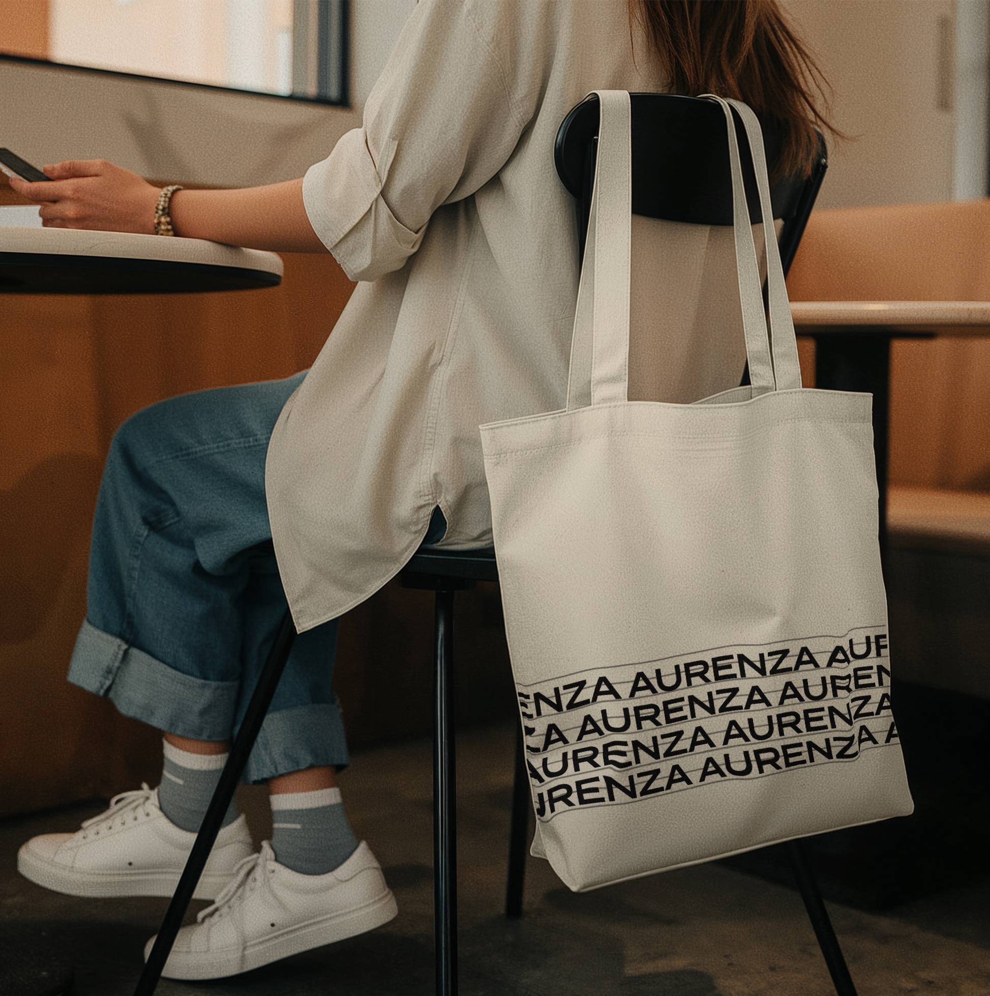 • Minimalist Aurenza logo print (black on natural beige)